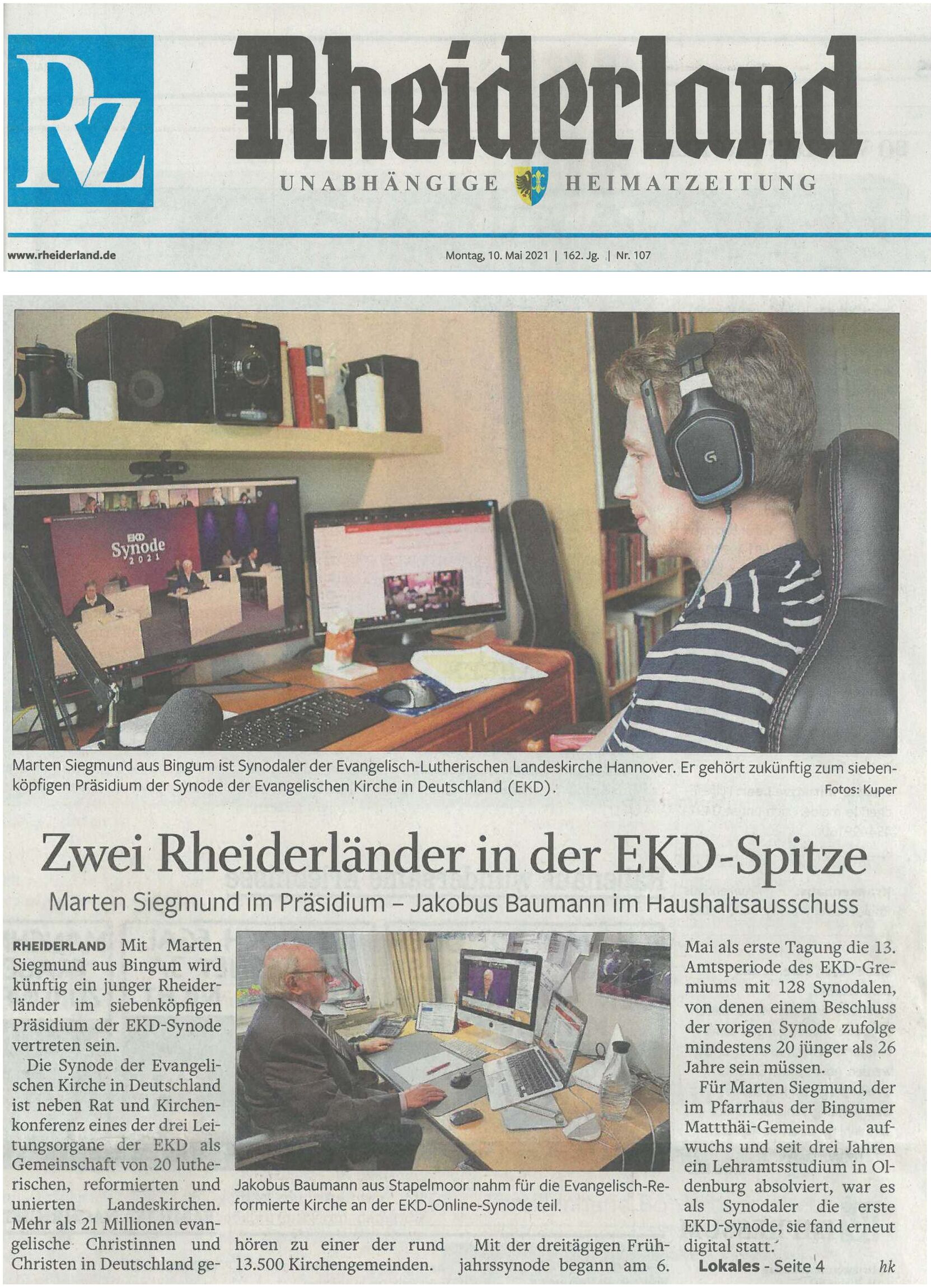 Die erste Tagung der neu gewählten 13. Synode der EKD fand als digitale Tagung statt. Mit dabei war Marten Siegmund (22), der vielen aus der Gemeindearbeit vor Ort oder seinem Engagement für den Kreisjugendkonvent im Kirchenkreis Emden-Leer oder die Landesjugendkammer der Hannoverschen Landeskirche bekannt ist.