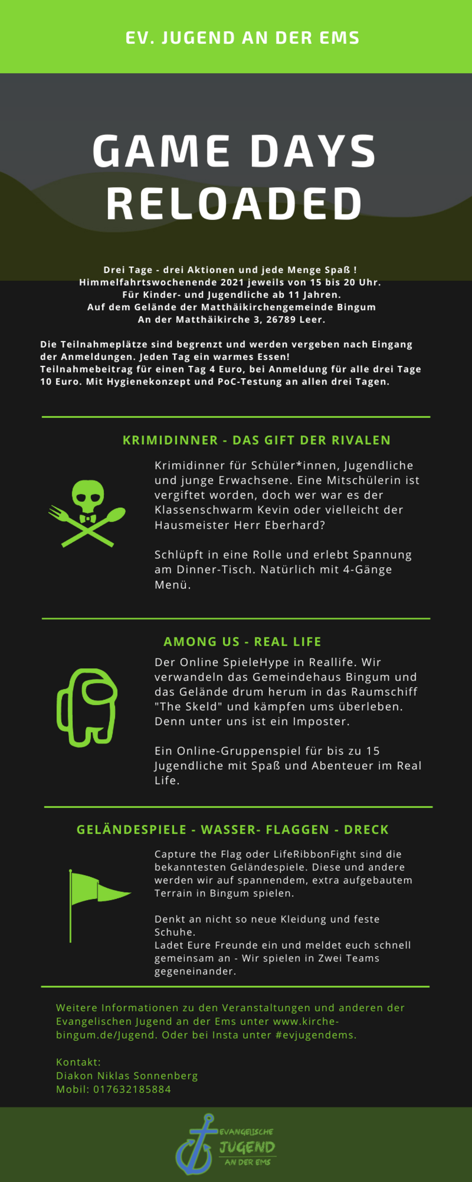 Das Team der Ev. Jugend Ems, der Game Days und Diakon Sonnenberg freuen sich auf Dich!