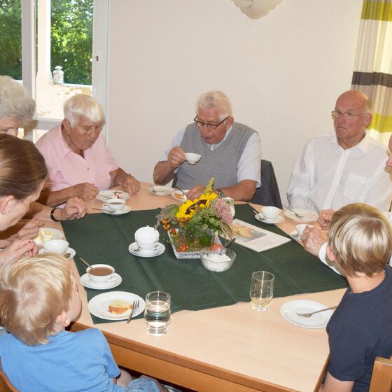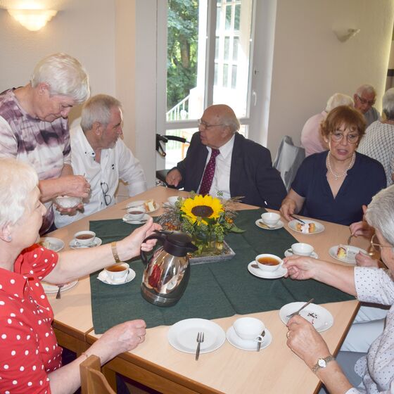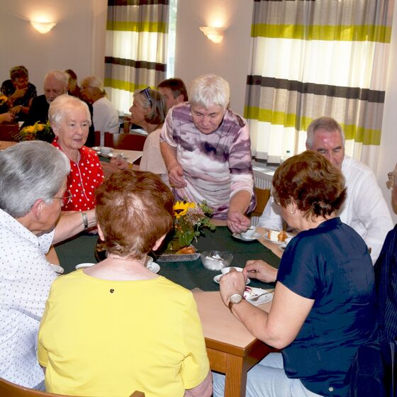 Im Anschluß trafen sich Jubilare, Familienmitglieder und Gemeindeglieder beim Empfang im Gemeindehaus. Bei Tee und später beim gemütlichen Mittagessen mit leckerem Buffet war reichlich Zeit zur Begegnung und zum Austausch.
