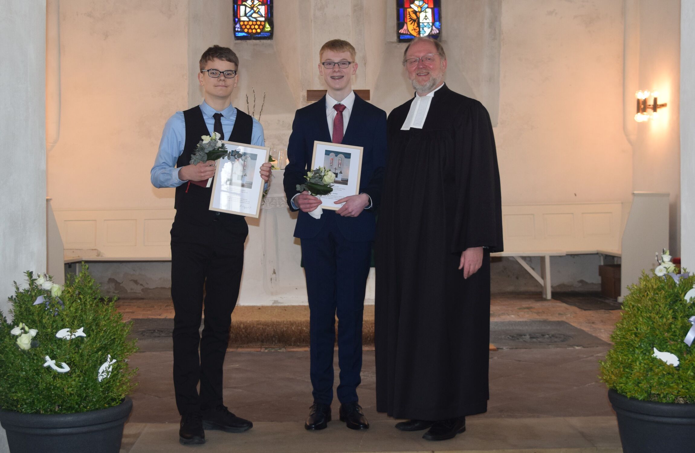 Lars Busker und Timon Janßen wurden am Sonntag Judika (26.03.2023) in der Holtgaster Liudgerikirche konfirmiert. Pastor Armin Siegmund erinnerte daran, dass unser Glaube nicht einfach da ist, sondern Begleitung braucht, wie wir sie beim Sprechenlernen oder auch Laufenlernen ganz selbstverständlich erfahren.
