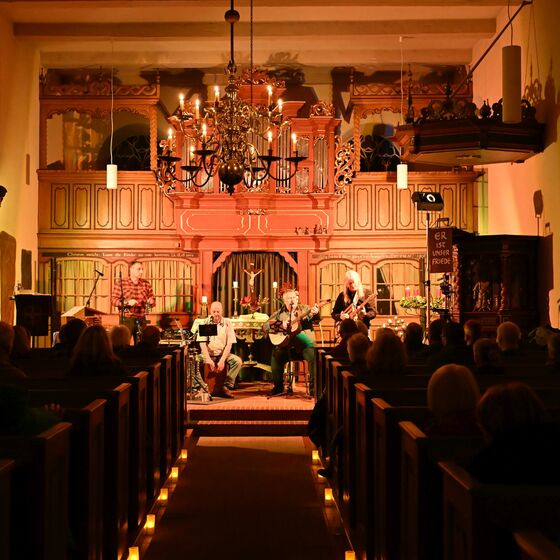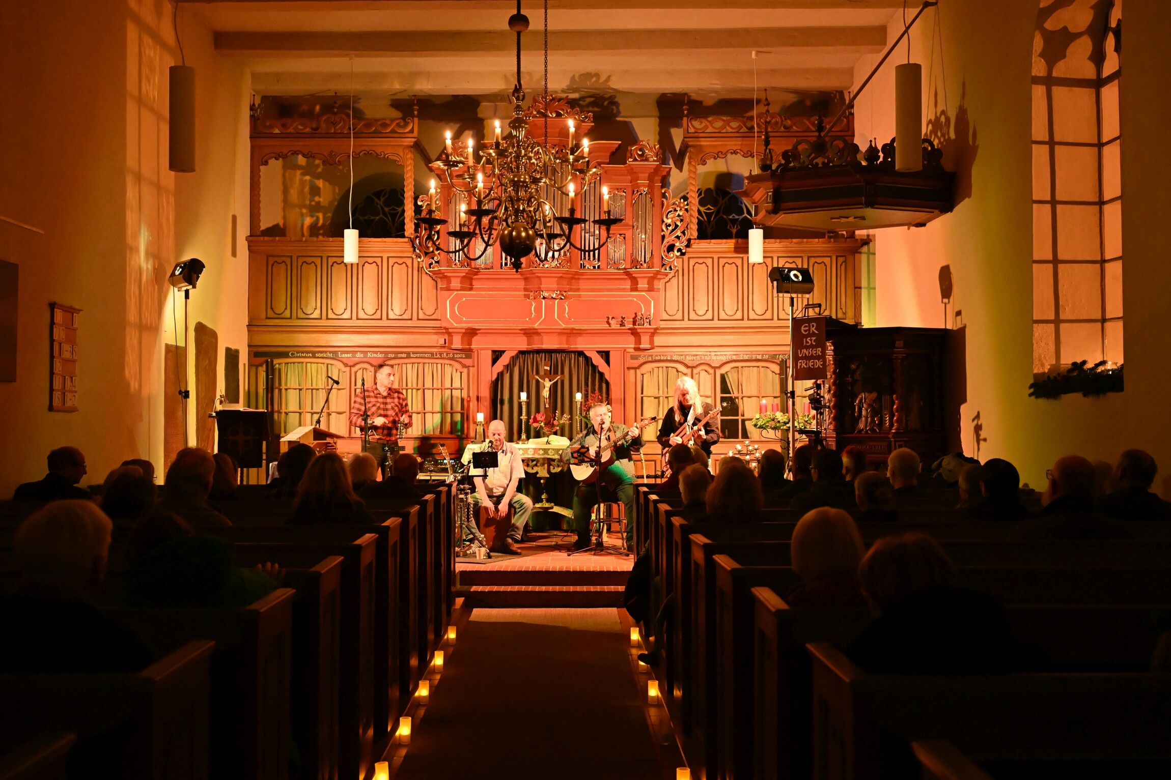 Schon beim Betreten der Kirche spürte man die besondere Atmosphäre: Viele kleine Kerzen tauchten das Kirchenschiff in warmes Licht, während ein leises Murmeln gespannter Vorfreude durch die Reihen ging. Und kaum setzte die Band an, verwandelte sich der Raum in eine Bühne voller Klangfarben und Gefühle.